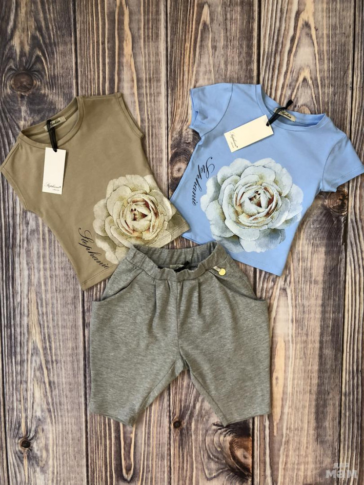 Футболка для девочки, принт-роза (голубой) Цена 630
