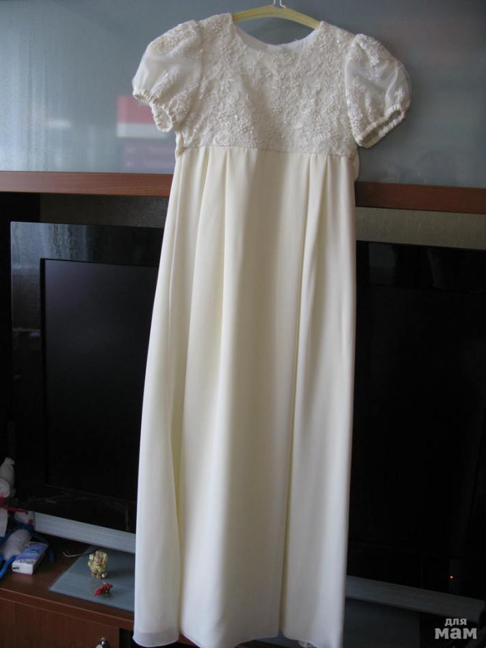 Бальное платье в стиле Наташи Ростовой, очень красивое, сшито на заказ. Размер примерно на 8лет. Замеры ширина под мышками 33, длина по спинке 105. Одето один раз, состояние нового. В подарок перчатки.