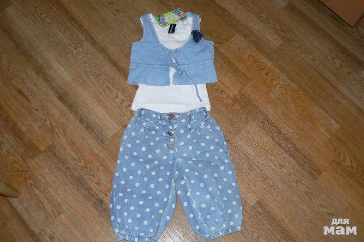 4. Продам джинсовые капри, фирма Нэкст, Англия, есть утяжки, р.98, большемерит