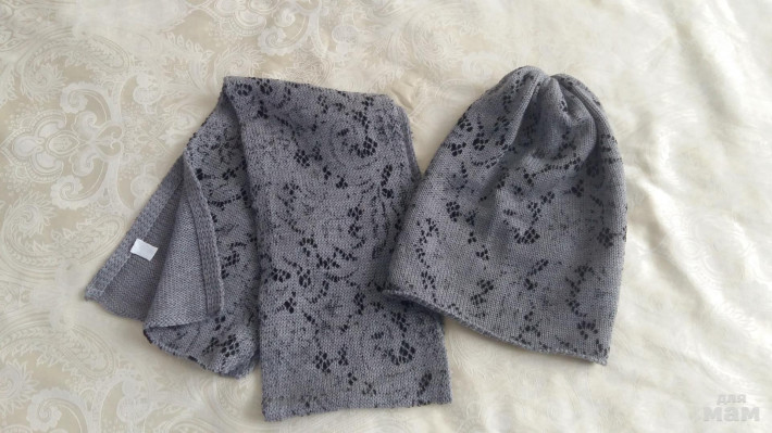 Шапка модель колпачком, 100% меринос, рисунок черный бархатистый, б/у