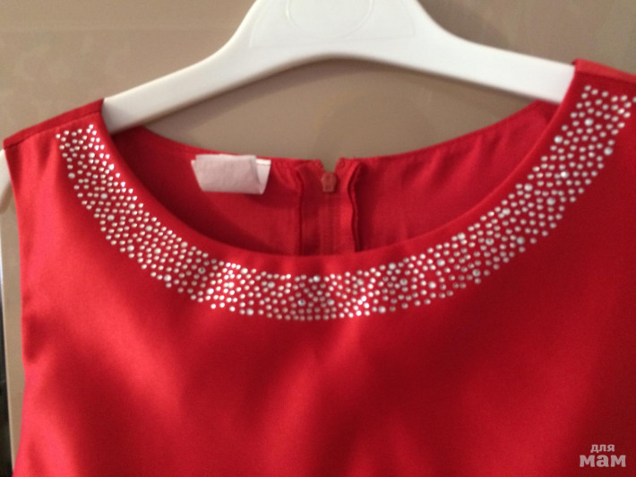 Платье насыщенного цвета, отделка стразиками, внизу подъюбник из сетки, низ держится пышным за счёт него. Платье без недочетов. Производство США.