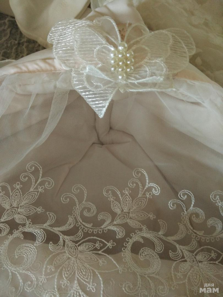 Нарядный конверт на выписку выполнен в оригинальном цвете пепельной розы. Тонкая съемная вуаль вышита крупным цветочным мотивом и декорирована жемчугом и объемными цветами в месте соединения с конвертом. Объемные мягкие буквы нашего логотипа улеглись на «полянку» из полупрозрачных цветов на передней части этого нарядного конверта на выписку. Поверх буковки «села» переливающаяся бабочка из тонкого тюля с шелком на крыльях. Цвет конверта, обилие нежного декора и легкий теплый наполнитель сделают день выписки вашей малышки незабываемым и порадует при прогулках в коляске до потепления. Застегивается конверт на "молнию", что помогает сохранить тепло и облегчает укутывание ребенка.