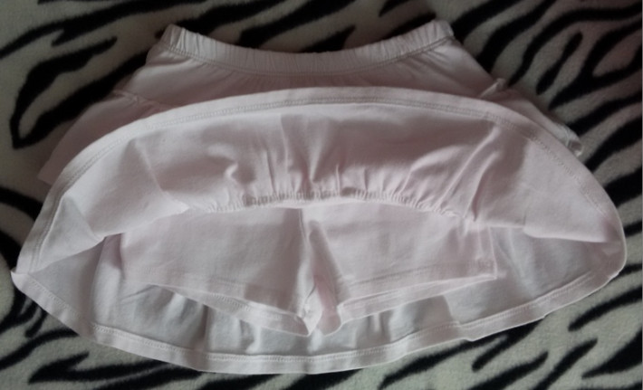 46. Юбка с вшитыми шортиками Childrens Place, размер 3Т. Была чисто белой, но при стирке окрасилась и стала с розовым оттенком. Цена 250 руб.