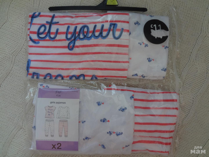 100% хлопок F&F комплект из 2 пижам 1300 руб или по одной 700 руб