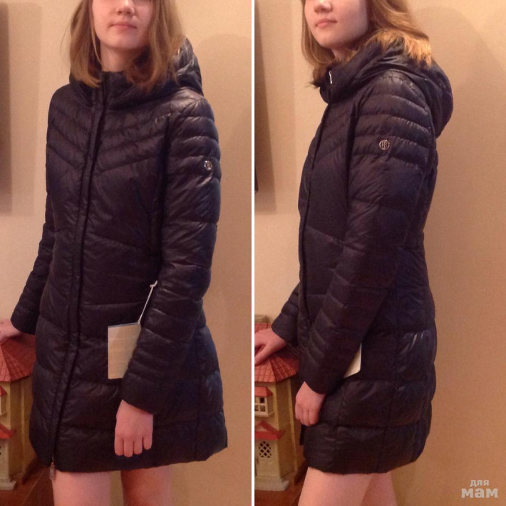 Коллекция осень-зима 17/18. Размер S. Цвет темно-синий. Пух. Пальто на холодную осень/весну. Подмышки-50, плечи -41,рукав-65,5/48,5, длина по центру спинки от капюшона- 87,5 см.