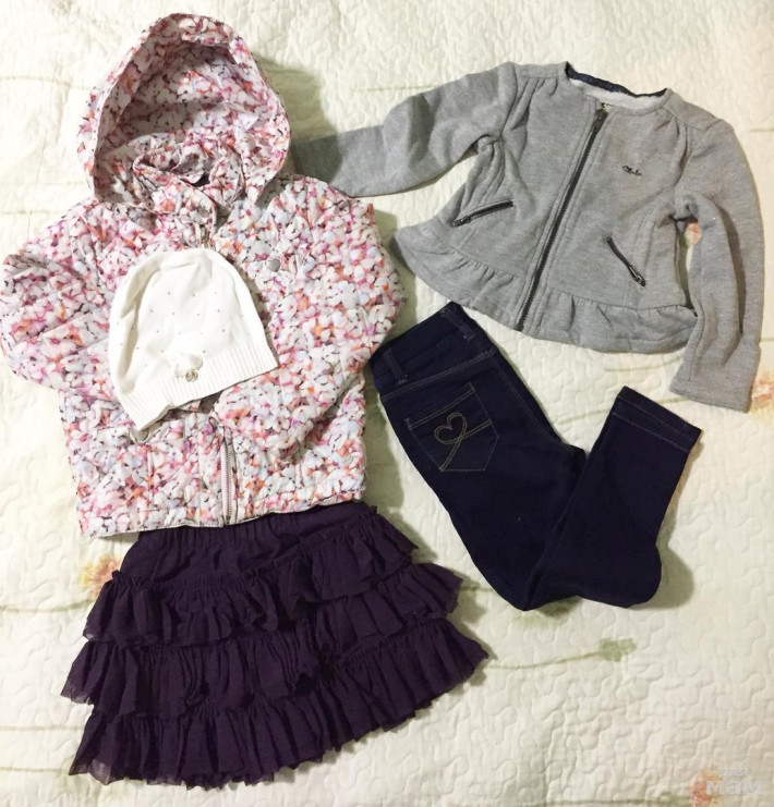 все в прекрасном состоянии. джинсы новые, маркировка 110, чуть маломерят-104-110; куртка маркировка 110, можно раньше, тоненькая, стёганка, синтепон; юбка пояс резинка, марк 5, можно и в 104, и раньше, и при 110; шапка D&D, 48-52; кофта французский бренд, плотный трикотаж, маркировка 104, но в 110 тоже прекрасно! за все 2500