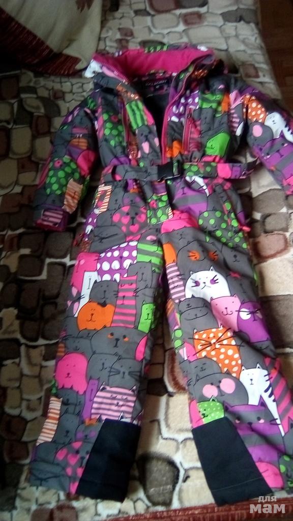 Состояние отличное. Из ньюансов-на штанине парочку микро сбоин-это от того что он нам великоват был немного.В носке абсолютно не заметно. В остальном-все в идеале. На температуру от +2 до -15. Очень удобный и яркий. Идет в размер. На фото ребенок 98см-запас есть везде....В подарок шикарный мех (заказывали специально). Цена 2000 с почтовыми.