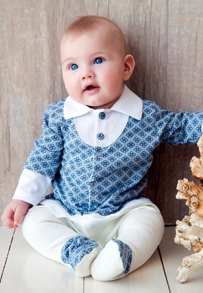 Полностью соответствует каталожному фото, размещенному в данном объявлении. Из белого трикотажа интерлок, декорированный хлопковой клетчатой тканью, с уникальным принтом и бабочкой. Размер 62.