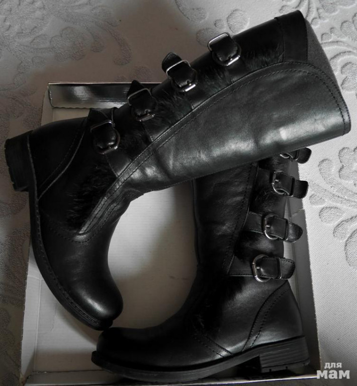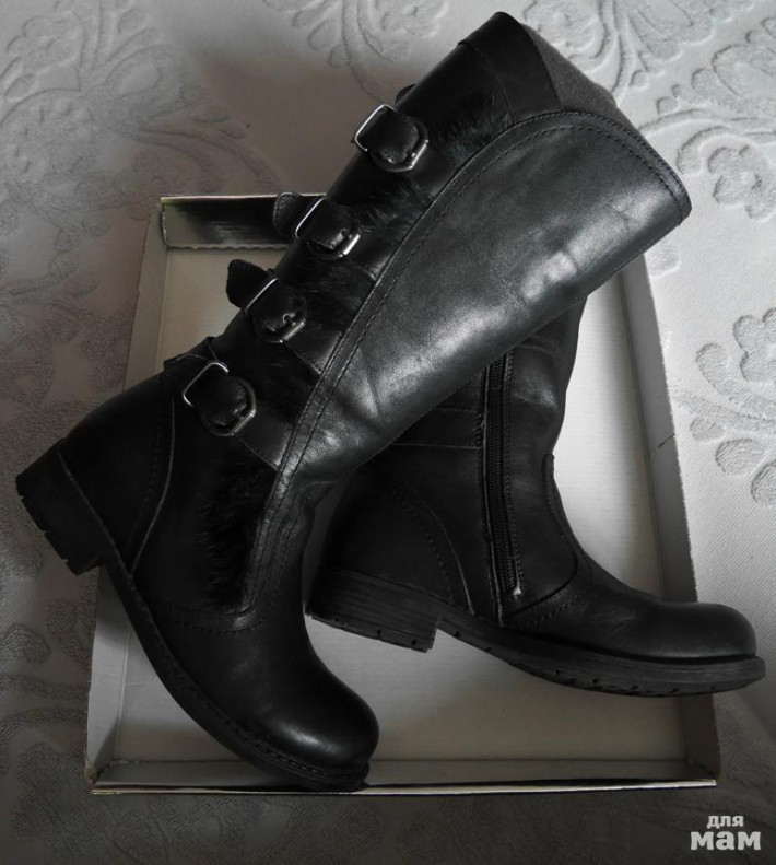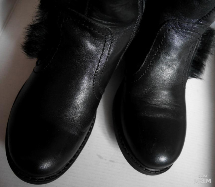 Кожа, утеплены, минус только немного посветлел каблук на 1 сапоге - на фото видно