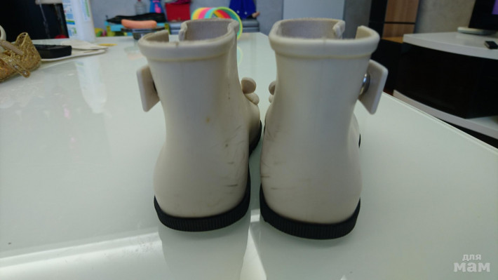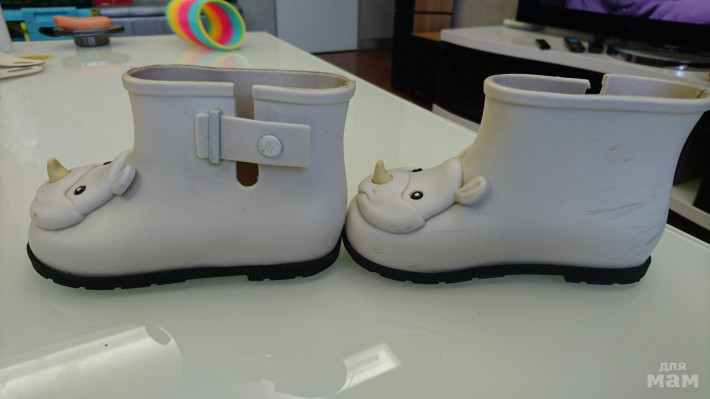 3. ПРОДАНЫ! Сапожки резиновые, летние, Минимелисса, 26размер, б/у активно, не порваны, без дырок и трещин, черные полоски от подошвы. 400р.