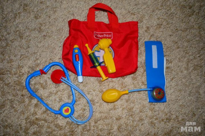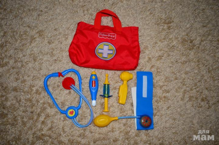Продам набор доктораFisher-price, состояние отличное. В состав набора входит:стетоскоп, манжета для измерения давления, термометр, игровой отоскоп и пружинный шприц- все в сумочке на липучках.Почта + 150р.