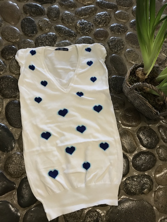 Трикотажная туника BLUMARINE 10 лет,100% хлопок.Белая с синими сердечками 2000 руб