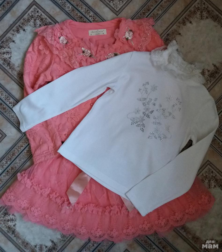 1. Костюм тройка, как новый, хлопок, водолазка в стразах, на рост 116-122 см, цена 1700р