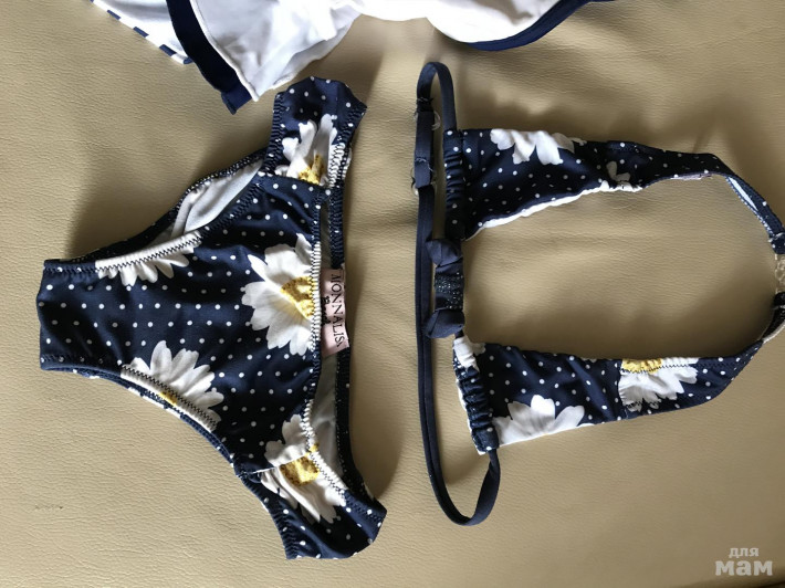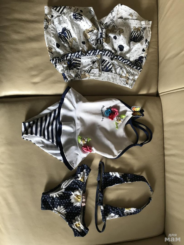 Сплошной сидит изумительно, на стройняшку, малышка не останется незамеченной)) есть пятнышко на юбочке, если присматриваться. Ну и цена соответствующая... купальники оригинал, шортики в подарок. цена за все, что на фото, по отделенности нет.