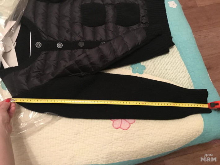 Комбинированная кофта-пуховик (спинка вязанная, такая же, как и рукава). Состояние отличное. Сделана х/ч. Была одета два раза, мне велика. Идёт на 46, маркировка L. Цвет темно-темно-синий.
