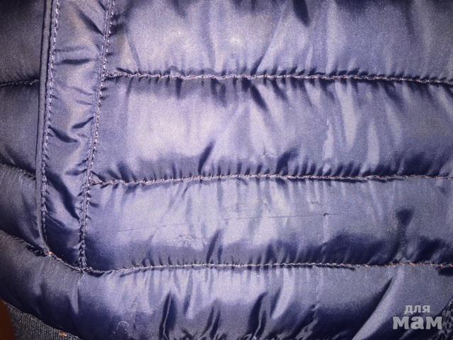 Наполнитель синтепон, два кармана (есть внутренние карманы ещё), цвет красивый, темно-синий.