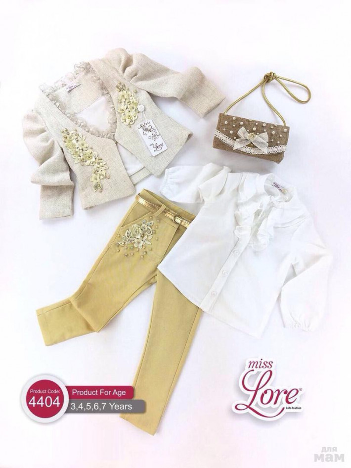 Очень красивый костюм-тройка для девочки Miss Lore (Мисс Лоре) для праздника: пиджак, брюки, блузка с жабо, сумочка. Надет 1 раз на елку.