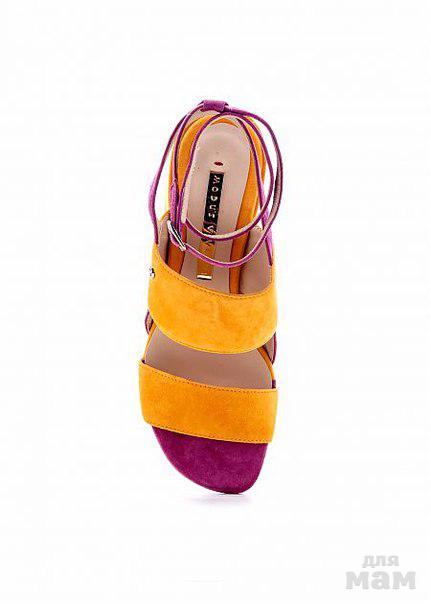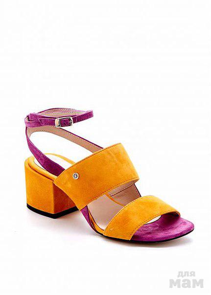 Босоножки Modus Vivendi из натуральной замши цвета манго и светлая фуксия. Высота каблука - 6 см. Модель дополнена функциональной пряжкой. Колодка стандартная.