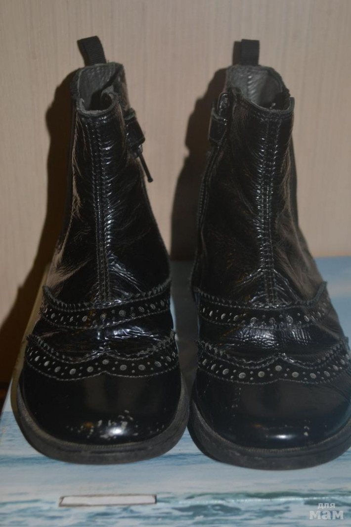 размер 29,черный лак,внутри кожа,легкие и очень удобные,носили не много,но покоцали носки
