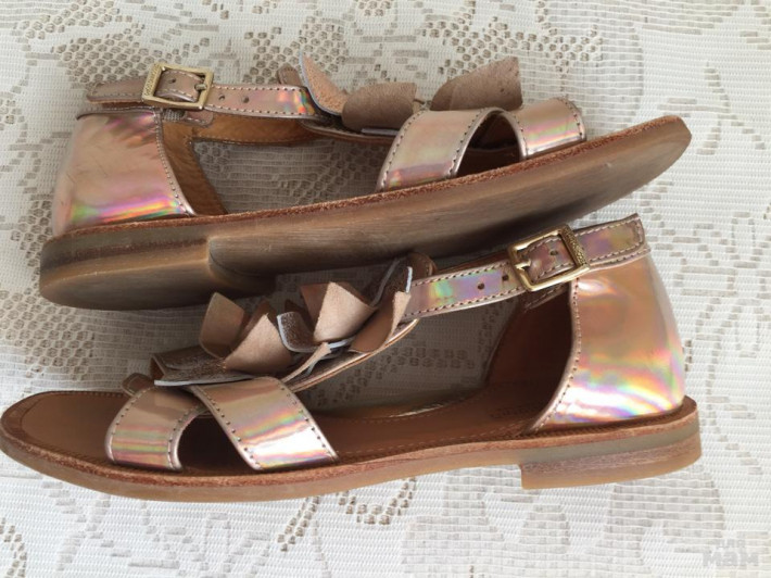 Босоножки Zecchino d'Oro 32 б/у. Италия. Есть супинатор. В очень хорошем состоянии. Каблук и подошва как новые. Очень интересный цвет, голографический, играет всеми оттенками спектра. Натуральная кожа.