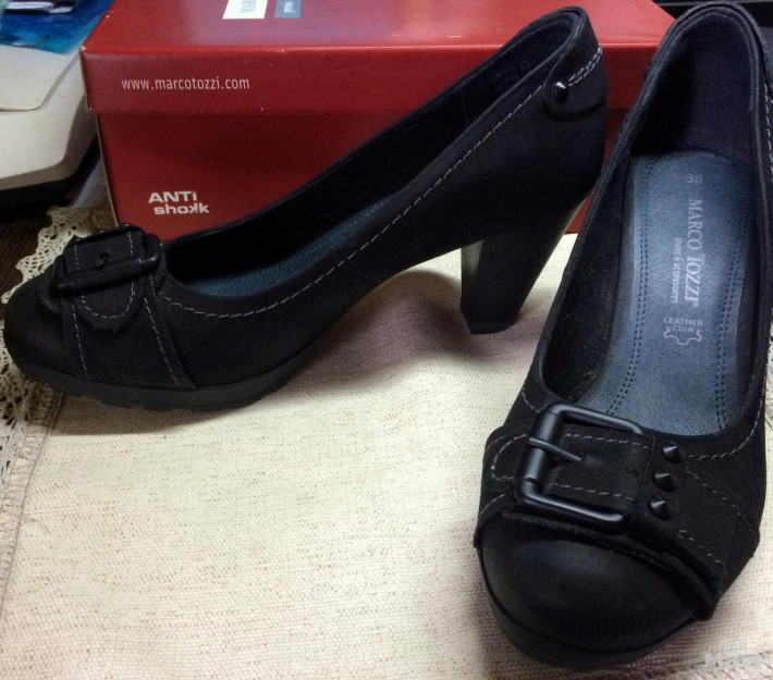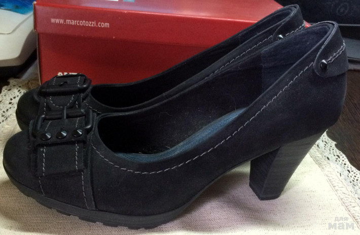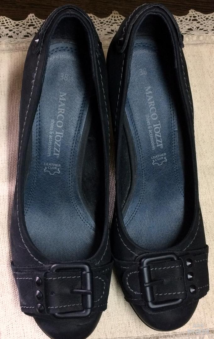 Продам туфли Marco Tozzi черные нубук 38 размер. Каблук устойчивый наборный 7,5 см. Прорезиненная подошва с протектором. Удобная колодка. Производство Германия. Состояние хорошее, надела один раз до машины.