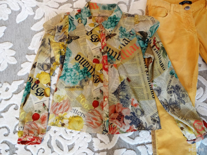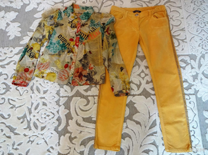 Нежнейшая блузка из шелка р.10 .Идеальное состояние! Джинсы велюровые, р.12.есть ,есть утяжка. Состояние отличное,но есть несколько темных точек, в носке не видны. Цена за комплект 1500р!