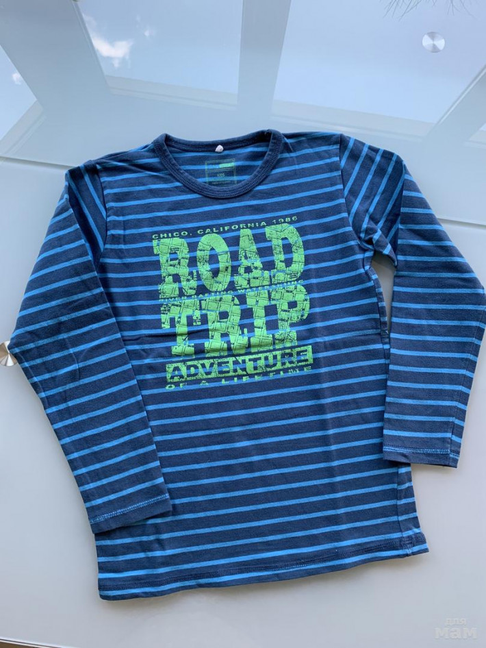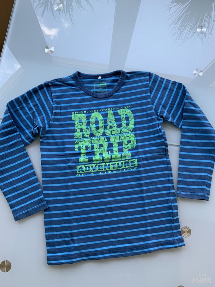 2) НОВЫЙ лонгслив Bogi (Бирюза/белая Полоска) р.128 ; 95% - хлопок, 5% - эластан.- 1000р .