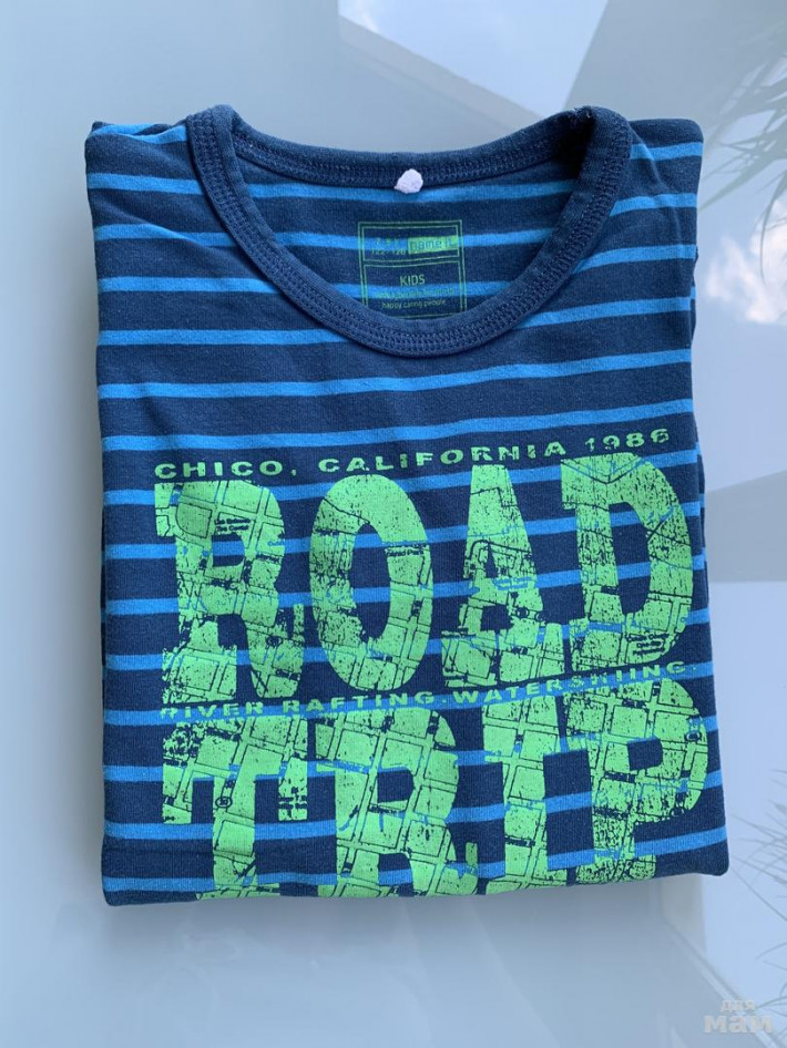 5) Полоска красно/сине/белая : BOGI р.122 ; 100% хлопок. Состояние новой. - 900р.