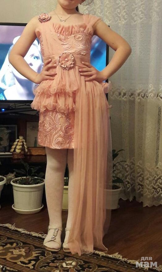 Продаю очень красиво платье для девочки 10 лет. Цвет пыльной розы. Расшито пайетками. От талии пришивная фатинова юбочка. А так же шлейф, который можно завязать бантом, как на фото, или оставить распущенным. Надевали 1раз на выпускной в 4-м классе. На лифе оборка из фатина пришита вручную, было очень глубокое декольте. При желании можно убрать. Цена 1800 с почтой.