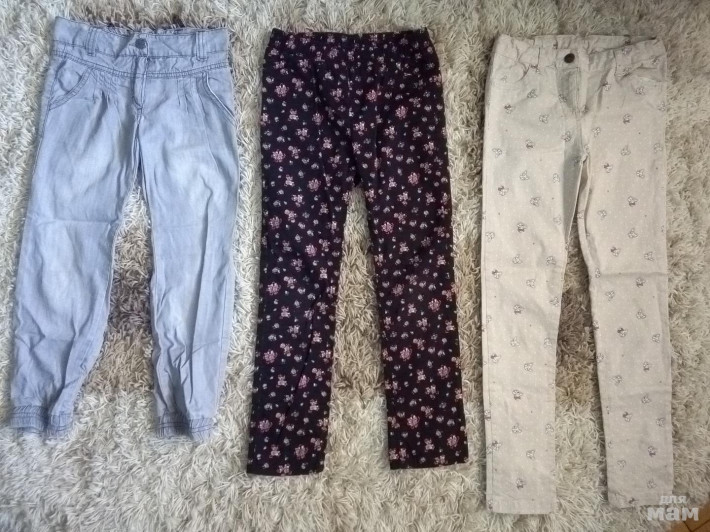 серые брючки на 8-9 л длина-78см пояс-29 тянется -250р брючки серые укороченые лёгкие на лето длина-69см пояс резинка 30смтянется-150р есть пятнышко чёрные брючки в цветок вайкики на7-9л-длина 76см пояс резинка-30см тянется-300р