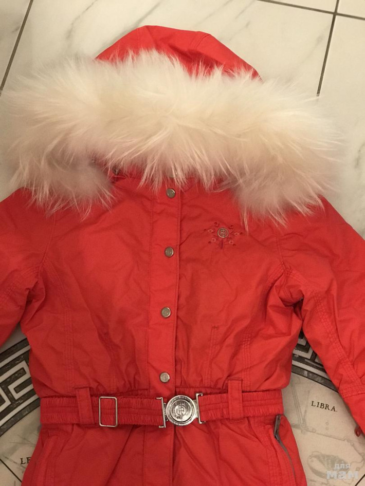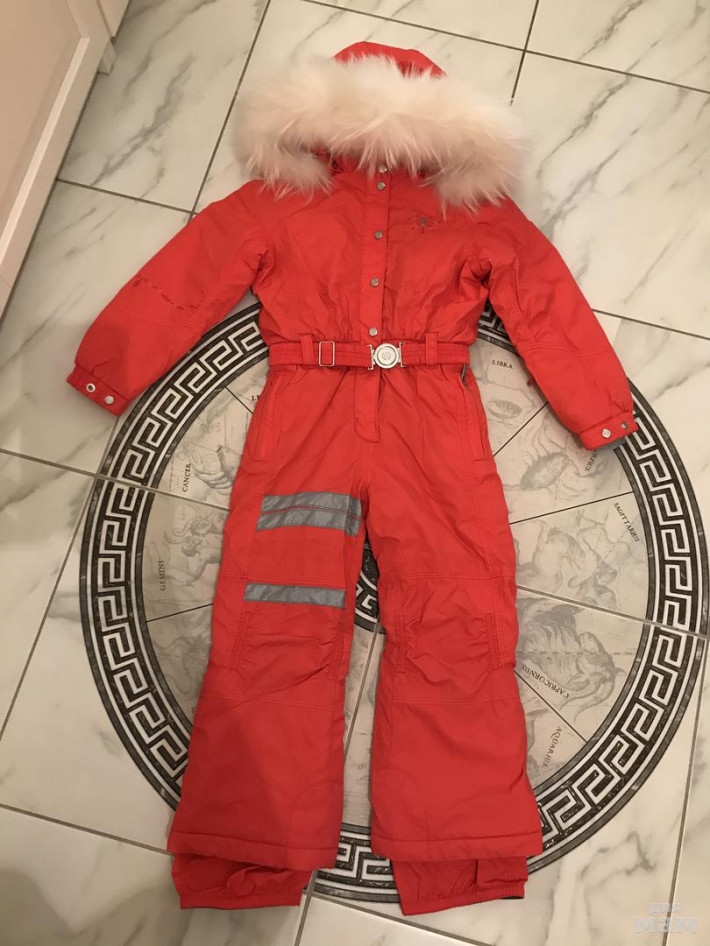 Комбинезон размер 7 лет. Носили одну зиму на горных лыжах. Распущена система роста на внутренних штанинах, нам так удобно было одевать на горнолыжные ботинки. Опушка на заказ, шикарная.( продаётся отдельно 1500) В местах поцарапанного пришит светоотражатель. Носили при росте 122-125 . Поэтому одевать можно раньше , но 125 максимум. Самовывоз Королев или Почта.