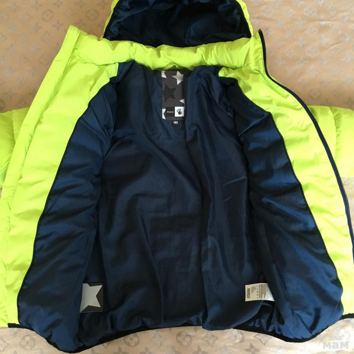 Куртка в отличном состоянии. Быстро переросли. Маркировка 140, но на мой взгляд лучше до 140.