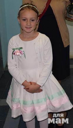 Очень красивое хлопковое платье,верх плотный хлопок,юбка 3 слоя.Одето пару раз в школу, потом дочь быстро выросла.Покупала в фирменном магазине Гулливер за 5000р