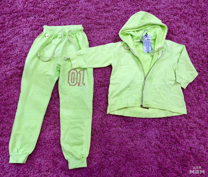 Здравствуйте, маломерит на размер, Кофточка идет широкого покроя укороченный рукав, принцип как разлетайка, от подм до подм 40см, длина 49 см сзади , спереди на см короче ( мерила спереди от плечевого)Штанцы общая длина 84 см, внутр шаговый 58 см