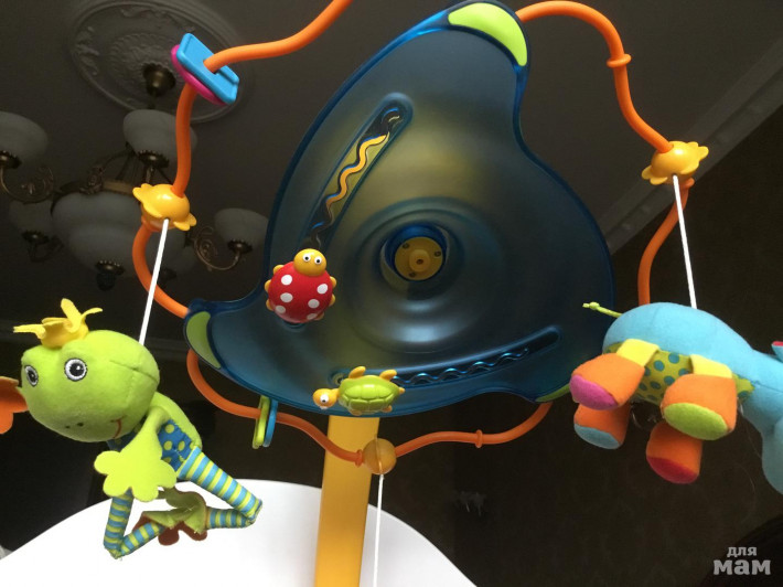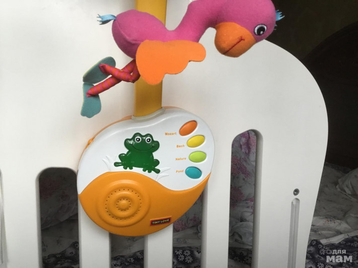 Прекрасный мобиль, 4 мелодии, с кнопкой включения/выключения на расстоянии. 2 уровня звука. Подсветка-ночник. Прекрасные мелодии классической музыки, звуки природы. Пульт в комплекте. Состояние нового.