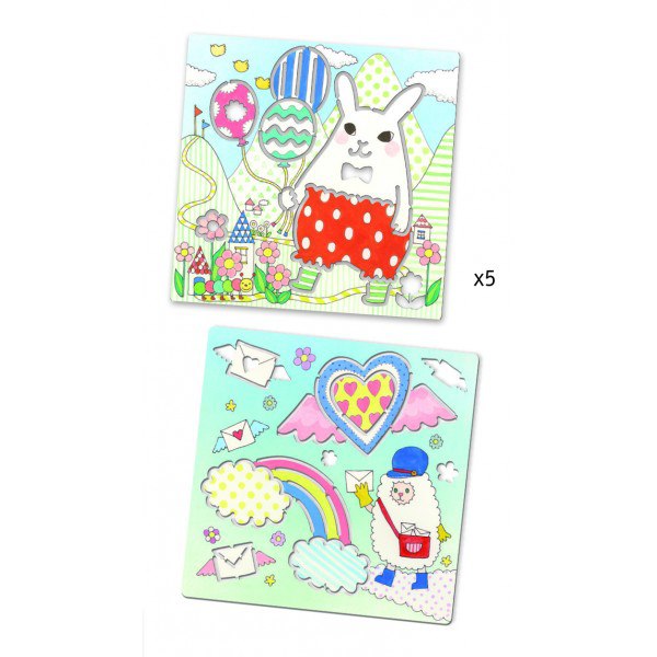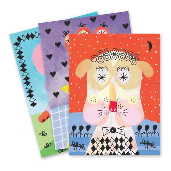 Используя штампы различных форм с разнообразными рисунками и яркие картинки с нарисованными фонами, ваш ребенок сможет создать забавных зверьков. Картинки получаются действительно невероятно милыми и забавными, их можно дарить и в качестве открыток.