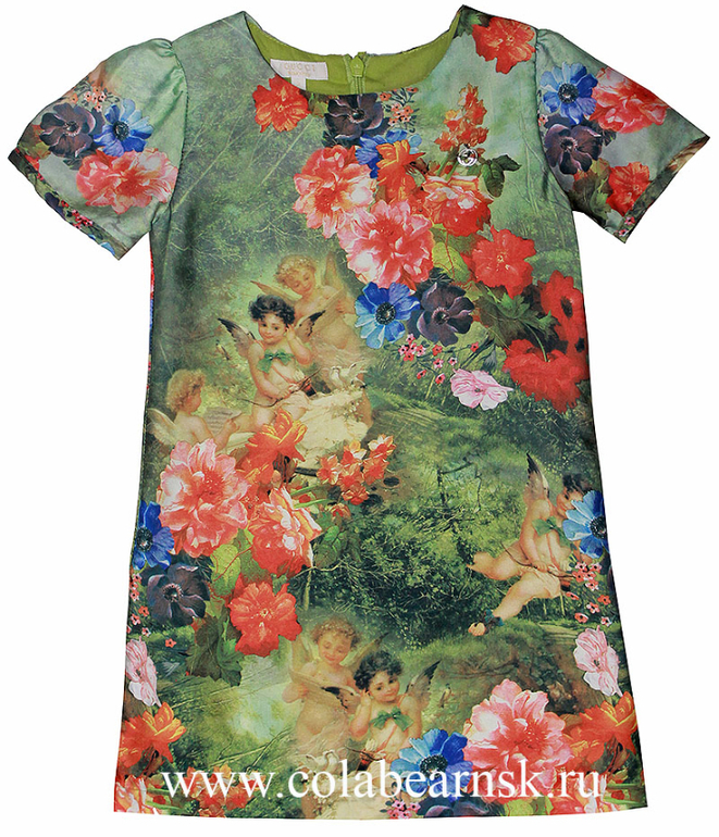 Платье с ангелочками копия Гуччи р.134 на хлопковой подкладке цена 500р