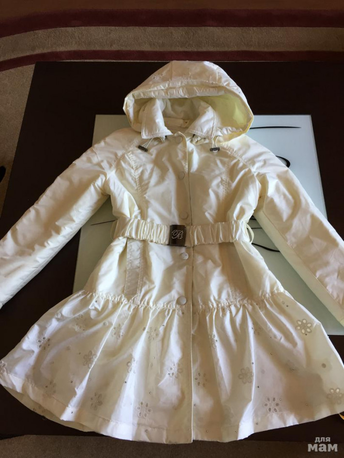 В отличном состоянии. Но все же есть маленький нюанс, испачкали пуговку( чистить не пробовали).Цвет молочный. Отделка стразами. Одето один раз на 1- ок сентября.