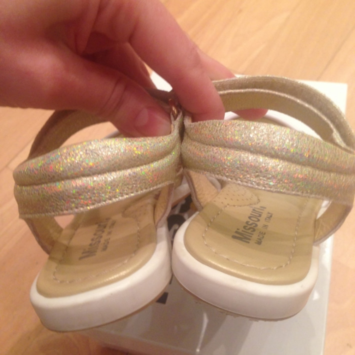 Туфли Equerry 31р. Очень симпатичные)) В идеале, не считая, что один цветок (в серединке) немного расклеился, умельцы очень легко все сделают. Ребенок пролил воду. Стелька 19,5см.