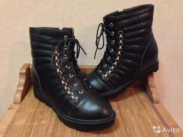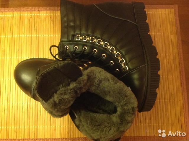 Замечательные, ботиночки на скрытой платформе с высокой прочной противоскользящий подошвой! Украшены модным в этом сезоне аксессуаром в виде цепочки. Шнуровка, молния для удобства при одевании. Внутри полный мех - овчинка!