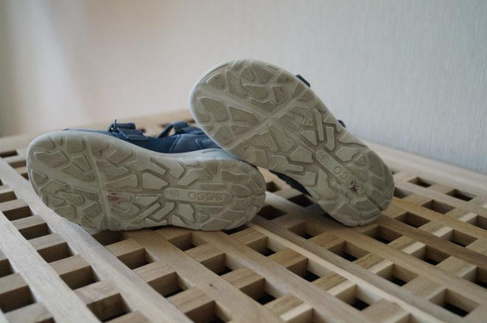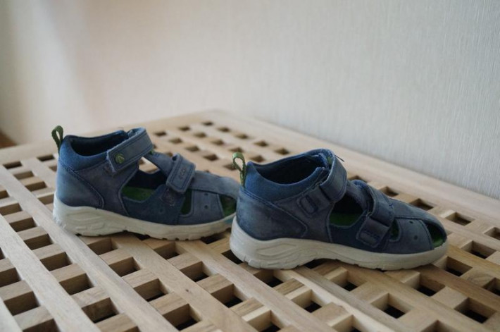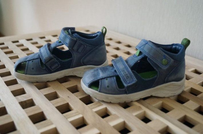 Продам закрытые сандалики Экко, размер 25 (стелька 15,5 см). Лучше на ножку 15-15,5 см. Б/у активно в группе в детском саду. Все потертости - почти мгновенный результат носки обуви Экко из мягкой кожи. Подошву специально к продаже не очищала, протерла после сада и все. Цена 500 руб.
