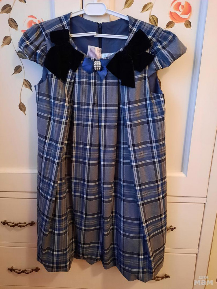 Красивое и стильное платье для школьницы из эксклюзивной коллекции "MONE". Отлично под водолазку и соло. Платье нарядное, допустим вариант носки не только в школу. Достаточно добавить ободок и красивые туфли, уже другой вид. Состав основной ткани: 50 % кашемир+50 % шерсть, на подкладе , в комплект входит брошь. Платье в состоянии новой вещи, не угадали с цветом школьной формы.