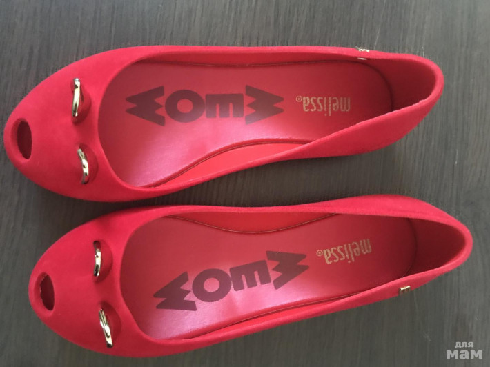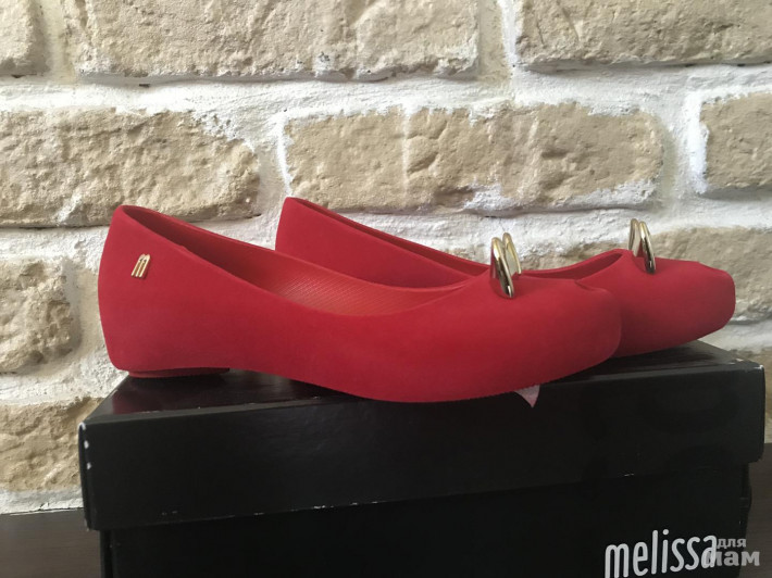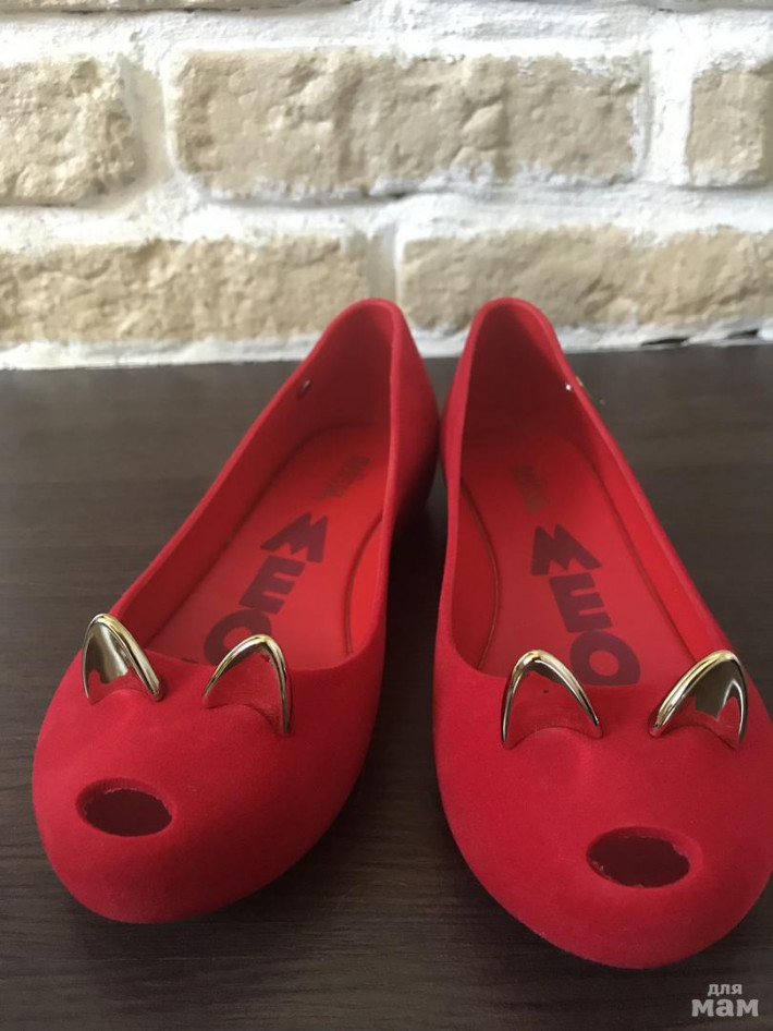 Абсолютно новые Mini Melissa мышки( или кошки , кому как нравится). Размер 32 , видимо маломерят , от края до края 19,2 см - мы к сожалению их переросли 😫😫😫. Внешне как бархатистые, в жизни очень яркий красный цвет.