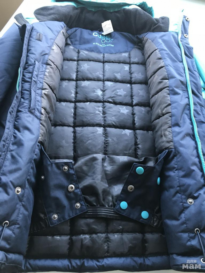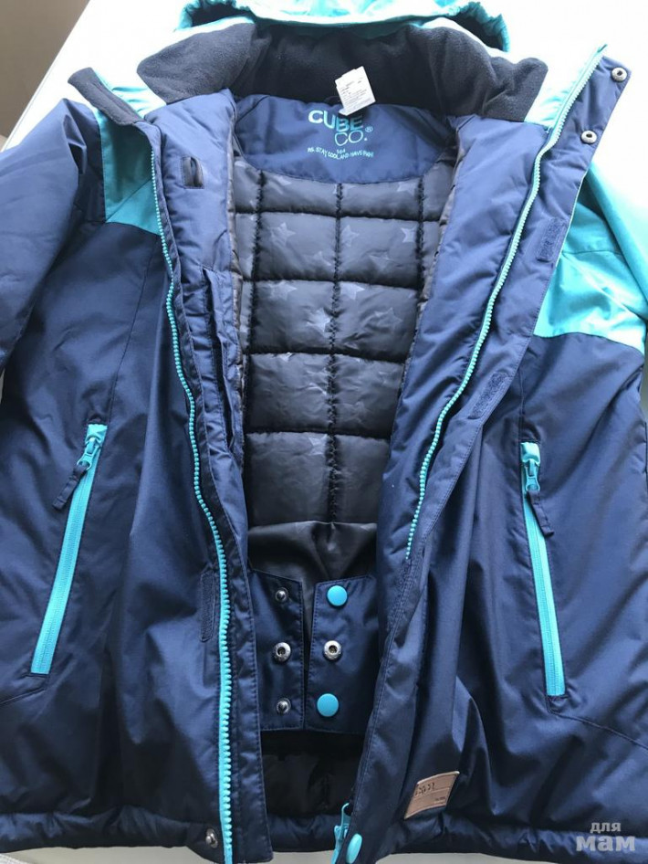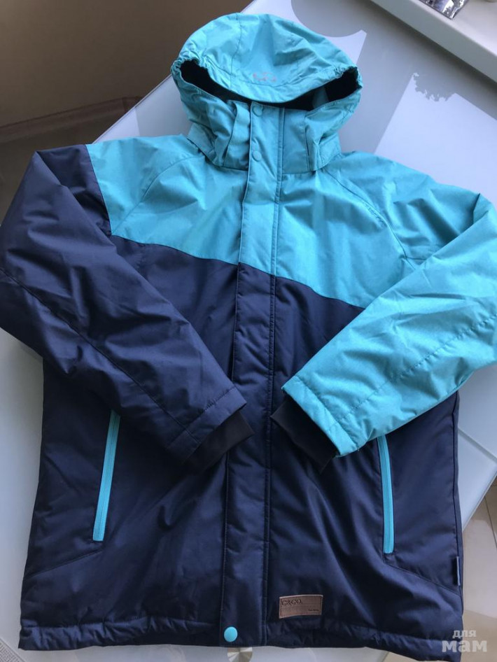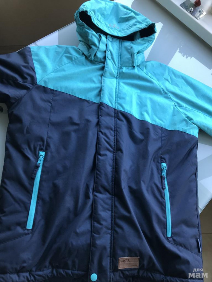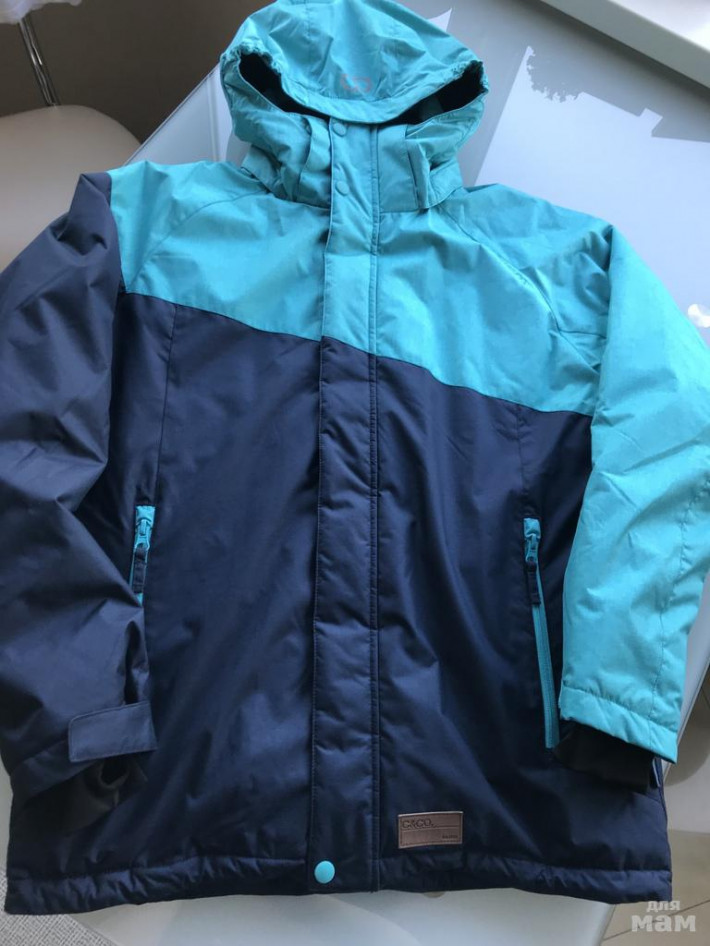 Цвет бирюзово-синий. Непродуваемая ткань. Выглядит эффектно!