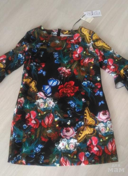 Расклешенное платье из крепа с цветочным принтом с рукавами фонариками с двойным воланом и застежкой на молнии, с карманами. Новое с биркой. размер S, на наш 42