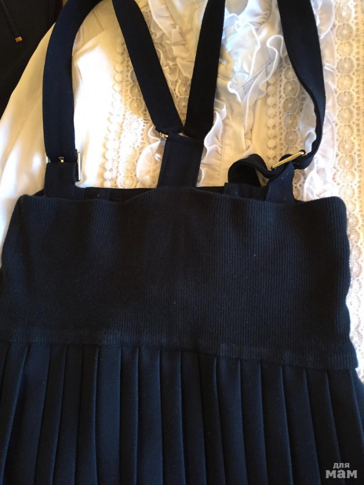 В хорошем состоянии. Цвет синий. Сзади по талии тр=котаж. Посадка идеальная.