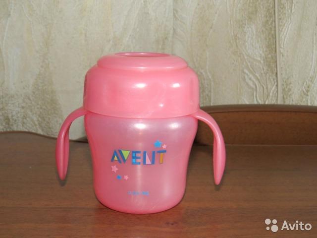 Продам кружку-поилку (б/у) с ручками фирмы "Avent".AVENT Чашка-поилка с ручками, 300 мл., для малышей от 6 мес. Бутылочка, б/у без носика-поилки, есть силиконовая прокладка эластичная без трещин и проч.дефектов.Вместо носика к кружке подойдет соска от бутылочки этой же фирмы, можно купить поилку-носик отдельно в любом детском магазине.Страна. Великобритания.Встреча м.Лермонтовский проспект.
