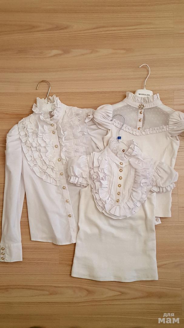 Блузки р.128, длин.рукав р.134, цвет белый, цена за 1 блузку 1000р. ВЕРХНИЕ ДВЕ ПРОДАНЫ!