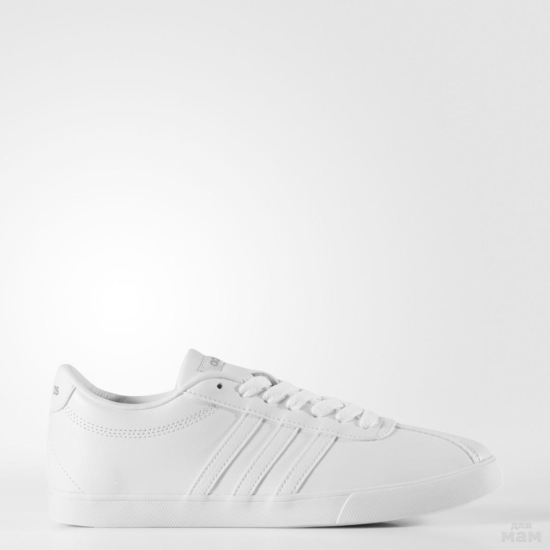 •Эта стильная женская модель с мягким кожаным верхом и классическими тремя полосками с перфорацией дополнена блестящей вставкой с эффектом металлик на пятке.