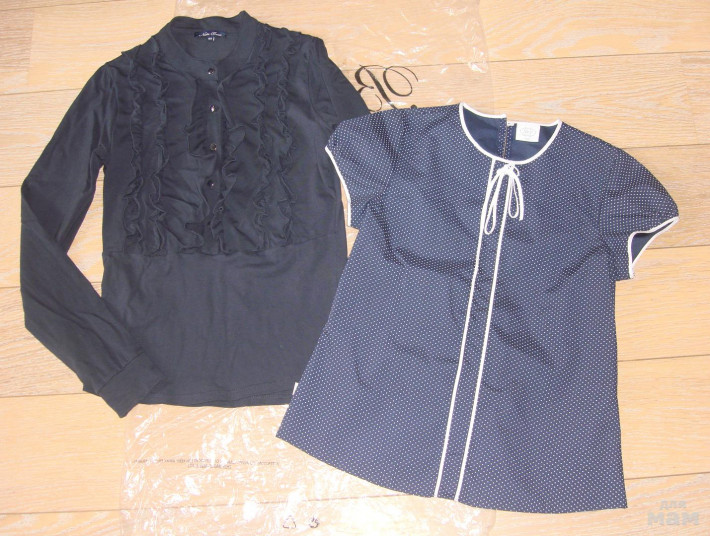 5 фото. Блузка с коротким рукавом Sly, размер 158 идет на рост 152-158, темно-синяя в мелкий белый горох